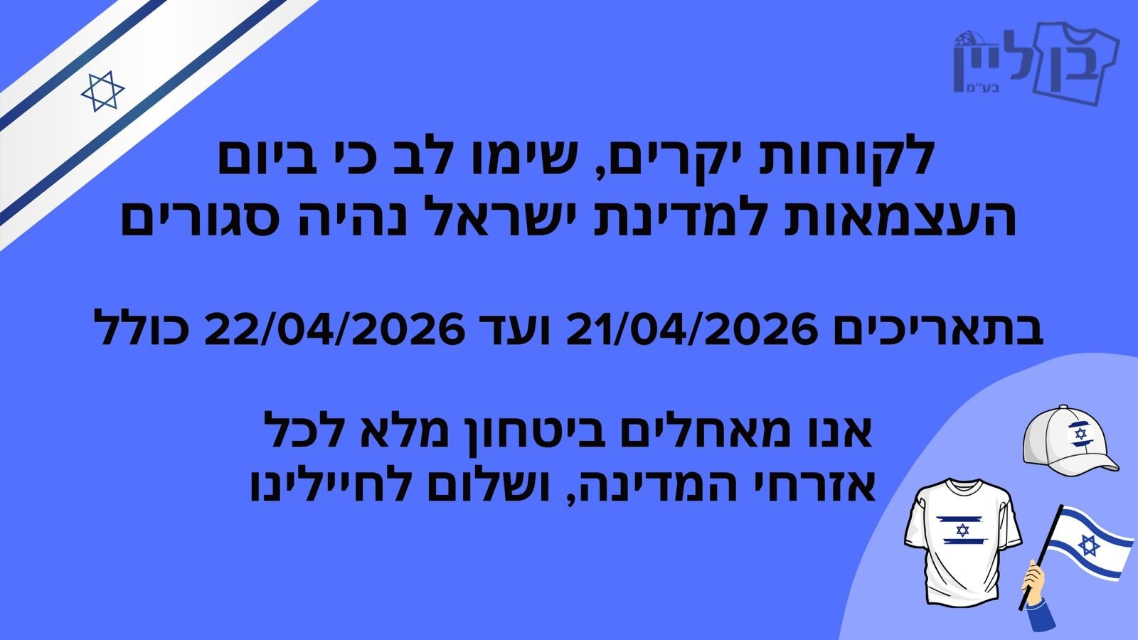 בהזמנה מתחת ל-50 מוצרים תחויבו בתשלום עבור הכנה לדפוס/רקמה: